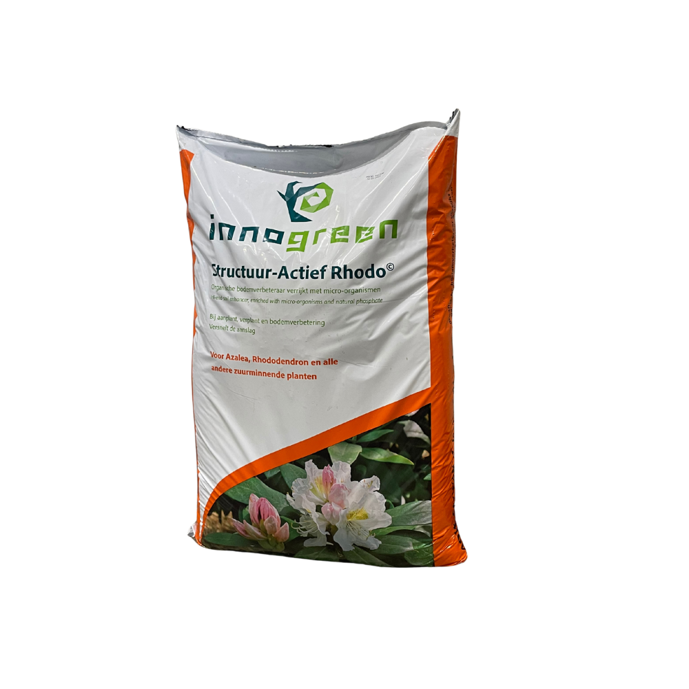 Structuur Actief Rhodo is ontwikkeld om een universele oplossing te bieden voor grondverbetering bij zuurminende planten. De rijke samenstelling maakt deze bodemverbeteraar tot een ideale aan- en verplantgrond. Speciaal te gebruiken voor zuurminende planten als Rhododendron, Azalea, Pieris, heide, Skimmia etc.